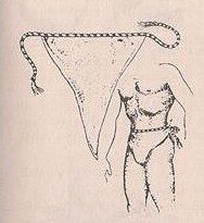 Koszula z otworami na głowę i ramiona sięgająca do kolan, podobna do tuniki, uszyta była z białej wełny wikunii, ale mogła być także w kolorze czarnym i lśniącym, jeśli to jej wyrobu użyto skórek nietoperzy.